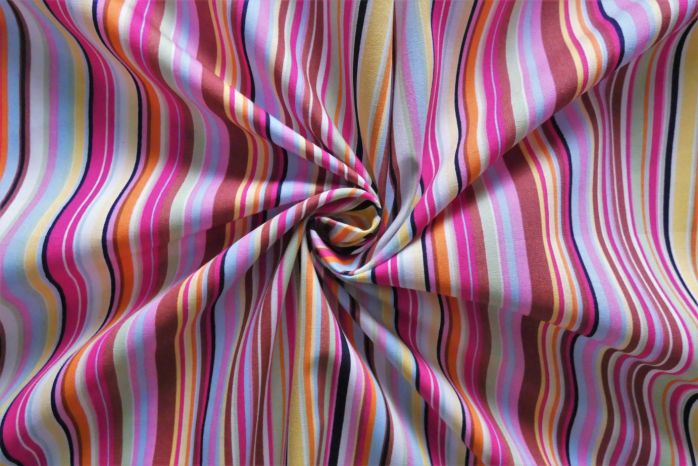 A Quality Ex-Designer 100% Cotton Poplin Stripe Print in Multi Colours - Pinks/Black/Light Blue/Yellow