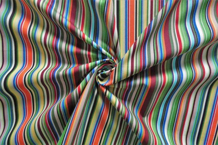 A Quality Ex-Designer 100% Cotton Poplin Stripe Print in Multi Colours - Green/Brown/Blue Tones