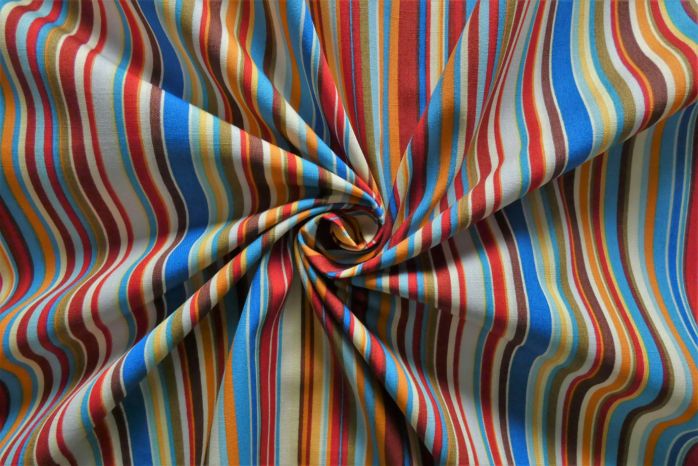 A Quality Ex-Designer 100% Cotton Poplin Stripe Print in Multi Colours - Blue/Brown/Yellow/Orange