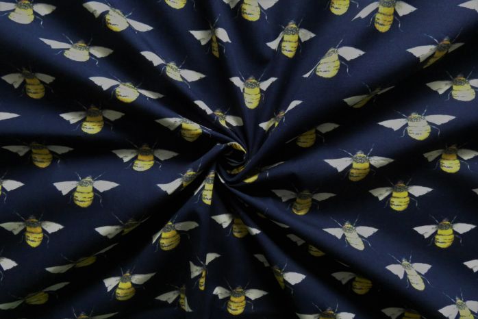 A Quality Ex-Designer 100% Cotton Poplin Bee Print in Navy