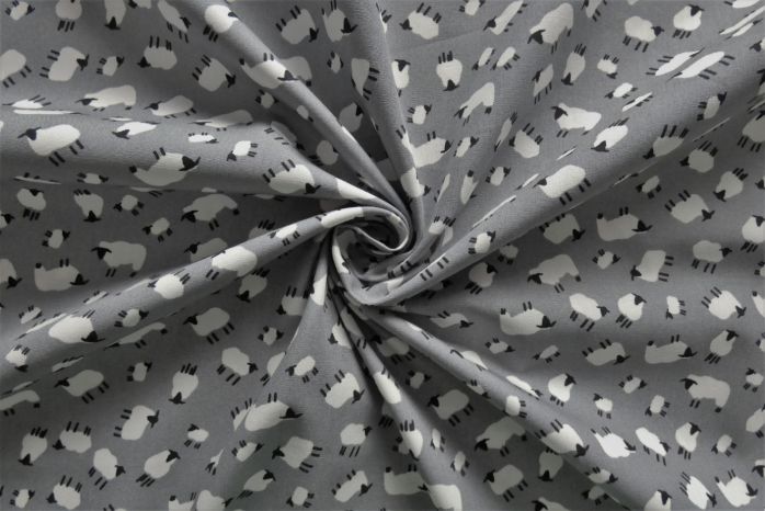 A Quality Ex-Designer 100% Cotton Poplin Sheep Print in Silver Grey