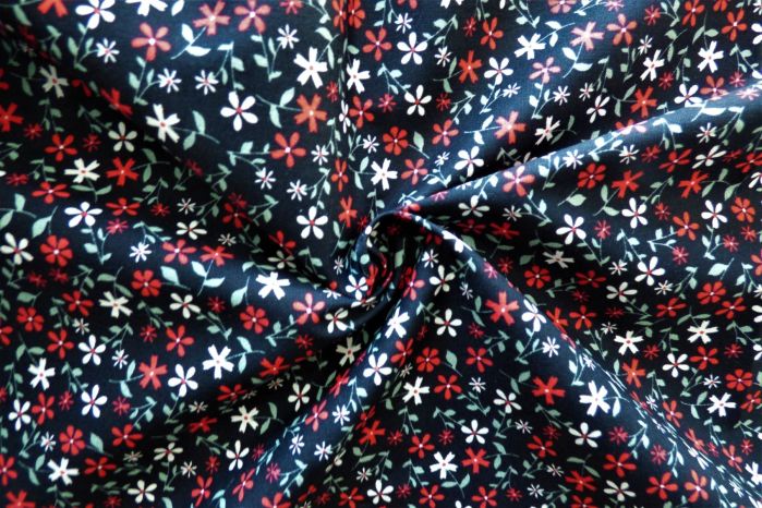 A Quality Ex-Designer 100% Cotton Poplin Floral Print in Black