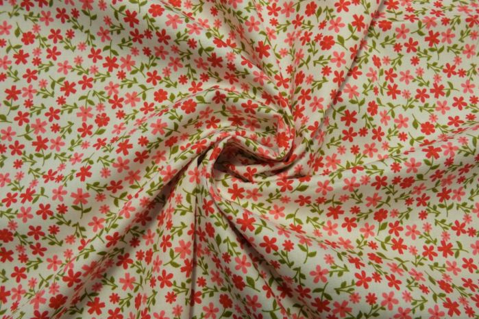 A Quality Ex-Designer 100% Cotton Poplin Floral Print in Coral