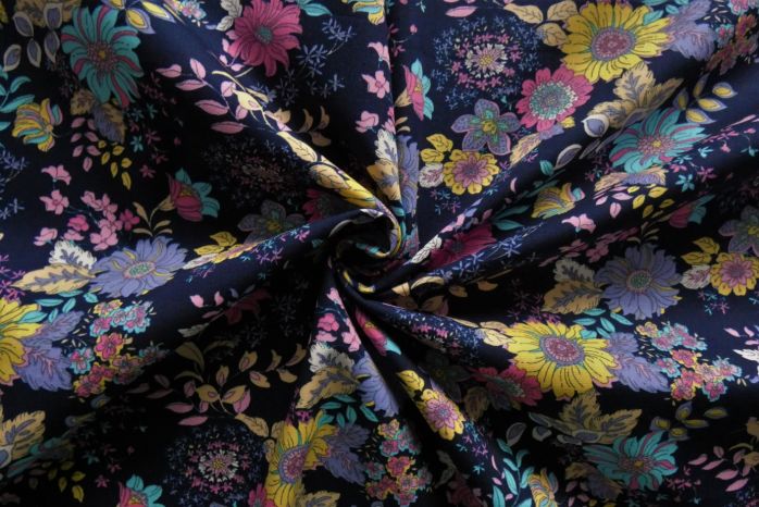 A Quality Ex-Designer 100% Cotton Poplin Floral Print in Navy/Pink/Pale Blue