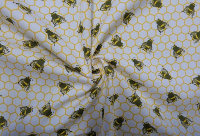 A Quality Ex-Designer 100% Cotton Poplin Honeycomb/Bee Print in Ivory/Yellow