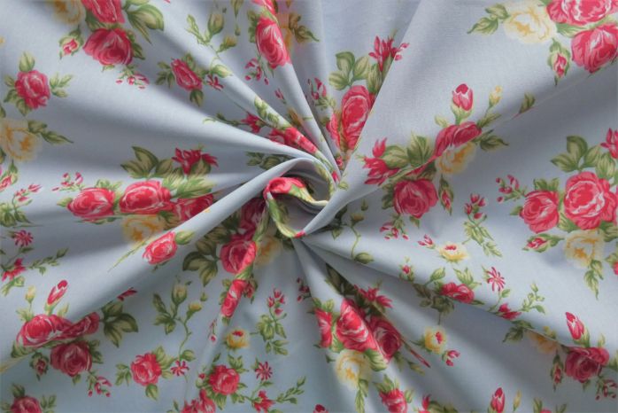 A Quality Ex-Designer 100% Cotton Poplin Floral Print in Baby Blue/Pink