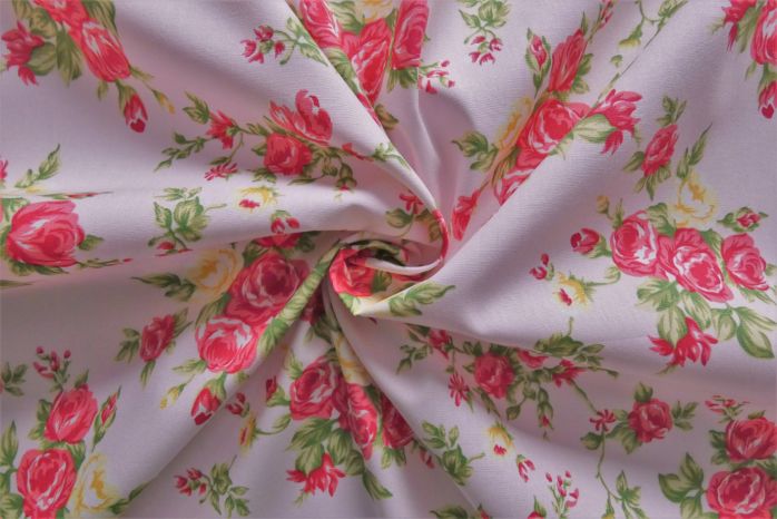 A Quality Ex-Designer 100% Cotton Poplin Floral Print in Pink