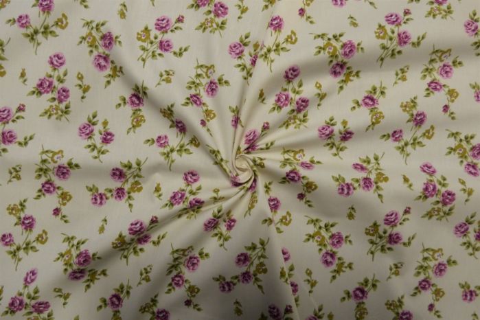 A Quality Ex-Designer 100% Cotton Poplin Floral Print In Cream