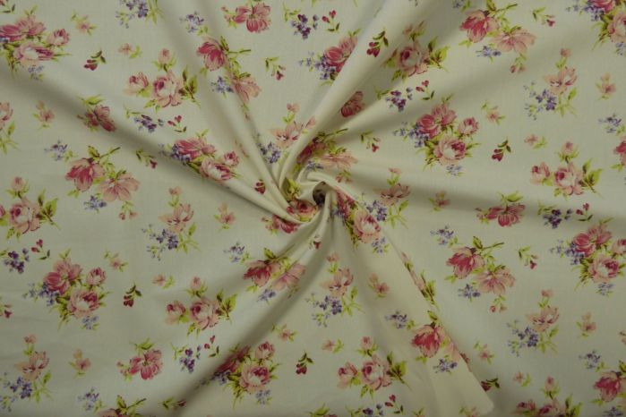 A Quality Ex-Designer 100% Cotton Poplin Floral Print In Pink