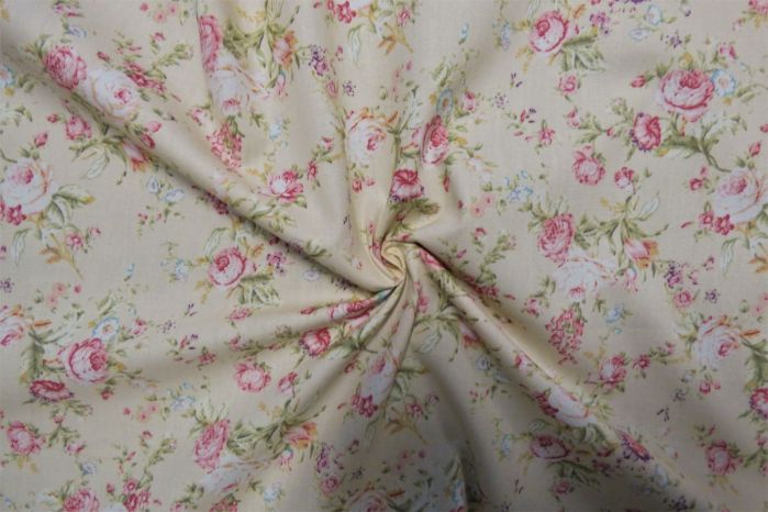 A Quality Ex-Designer 100% Cotton Poplin Floral Print In Ivory