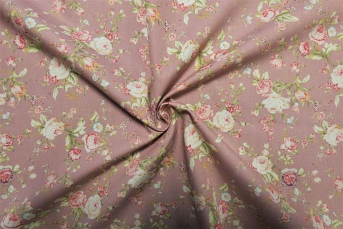 A Quality Ex-Designer 100% Cotton Poplin Floral Print In Rose