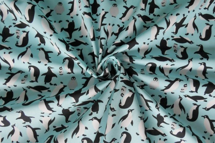 A Quality Ex-Designer 100% Cotton Poplin Penguin Print In Blue