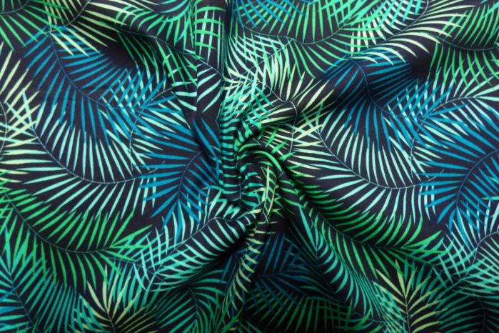 A Quality Ex-Designer 100% Cotton Poplin Leafy Ferns Print In Navy And Green