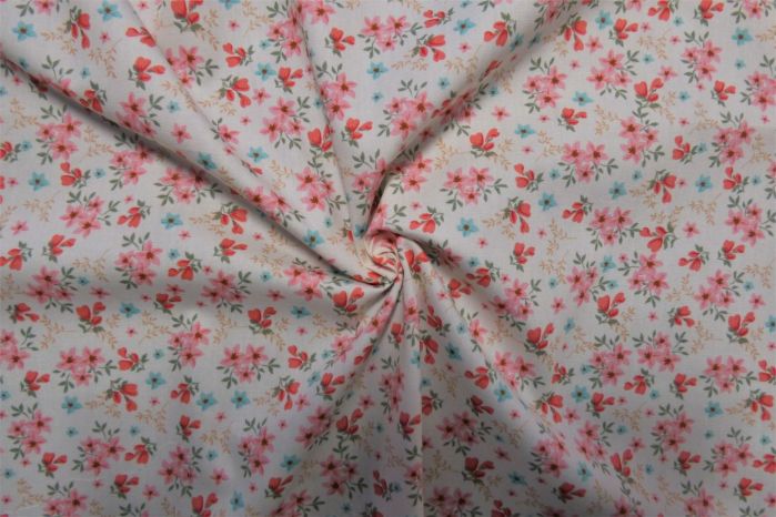 A Quality Ex-Designer 100% Cotton Poplin Small Floral Print In Coral