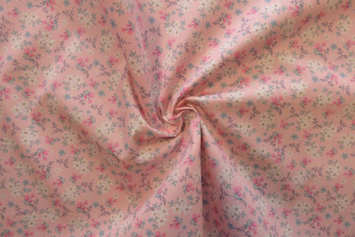 A Quality Ex-Designer 100% Cotton Poplin Small Floral Print In Pink
