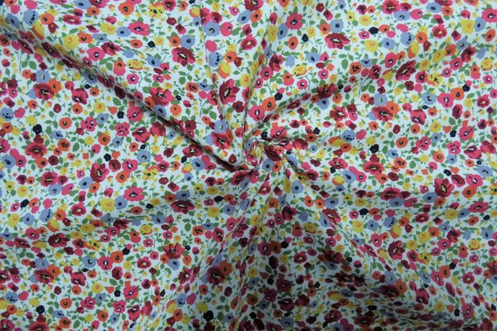 A Quality Ex-Designer 100% Cotton Poplin Ditsy Floral Print In Red