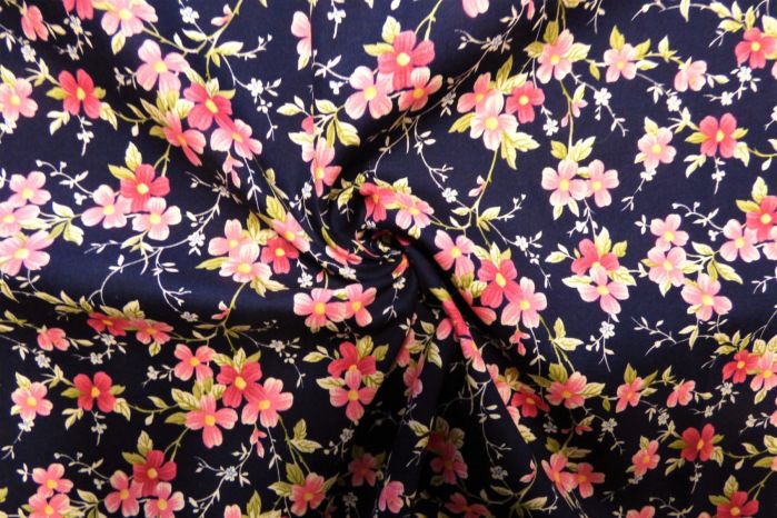 A Quality Ex-Designer 100% Cotton Poplin Floral Print In Navy