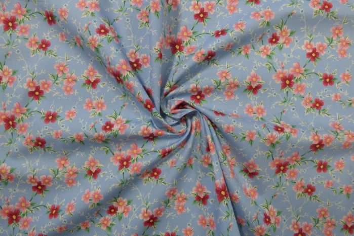 A Quality Ex-Designer 100% Cotton Poplin Floral Print In Sky