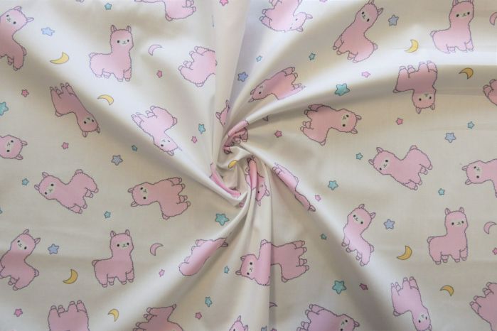 A Quality Ex-Designer 100% Cotton Poplin Llama Print In Ivory