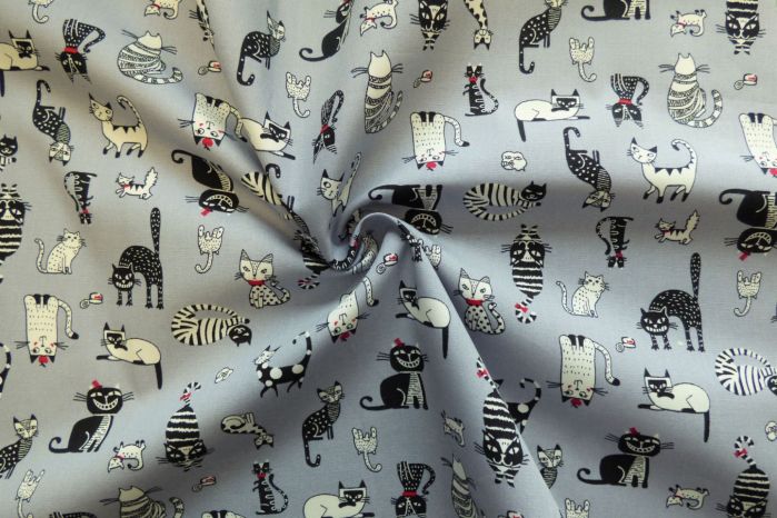 A Quality Ex-Designer 100% Cotton Poplin Cat Print In Grey