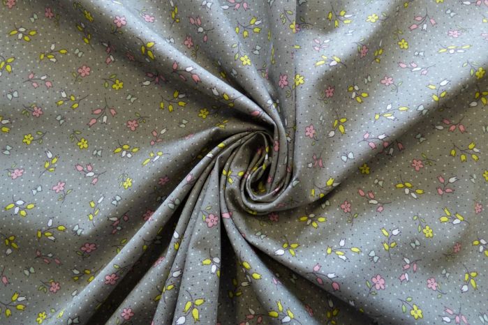 A Quality Ex-Designer 100% Cotton Poplin Mini Floral Print In Grey