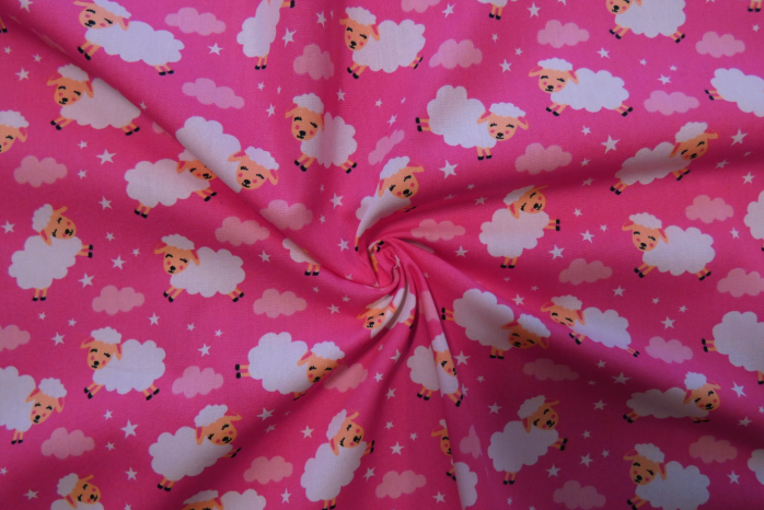 A Quality Ex-Designer 100% Cotton Poplin Sheep Print In Rose