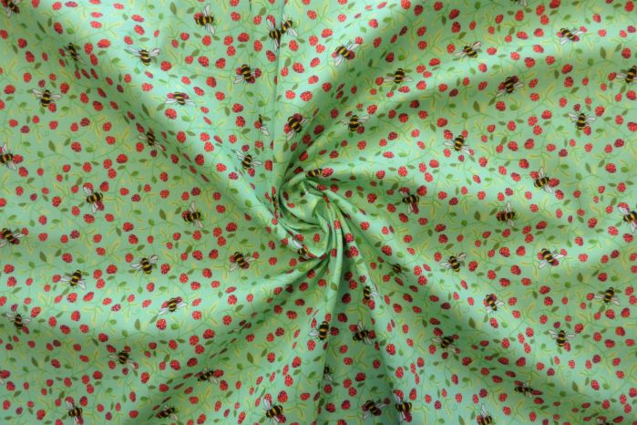 A Quality Ex-Designer 100% Cotton Poplin Strawberry Patch Print In Meadow Green