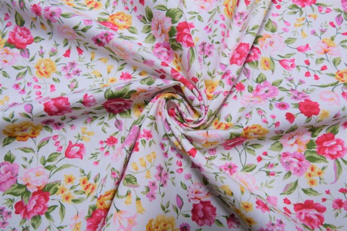 A Quality Ex-Designer 100% Cotton Poplin Floral Print in Vibrant Tones on a Ivory Background