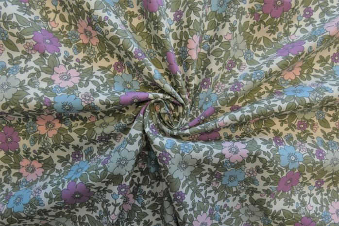A Quality Ex-Designer 100% Cotton Poplin Floral Print In Lilac, Ivory & Green Tones