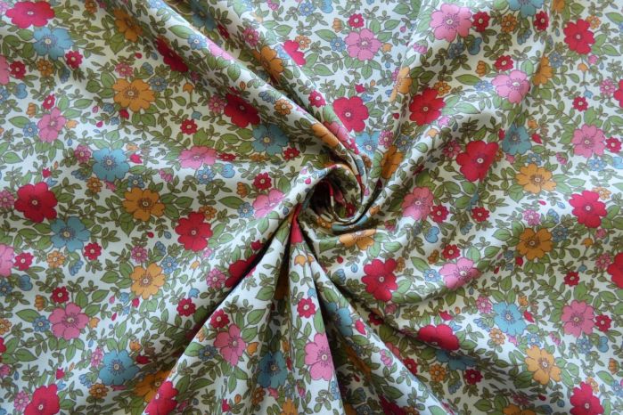 A Quality Ex-Designer 100% Cotton Poplin Floral Print In Red, Cream, Ochre & Green Tones