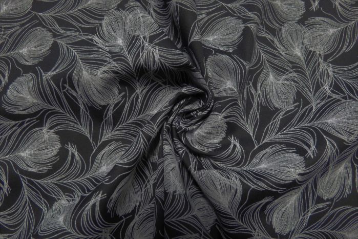 A Quality Ex-Designer 100% Cotton Poplin Digital Feather Print in Black & White