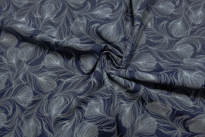A Quality Ex-Designer 100% Cotton Poplin Digital Feather Print in Navy & Light Blue
