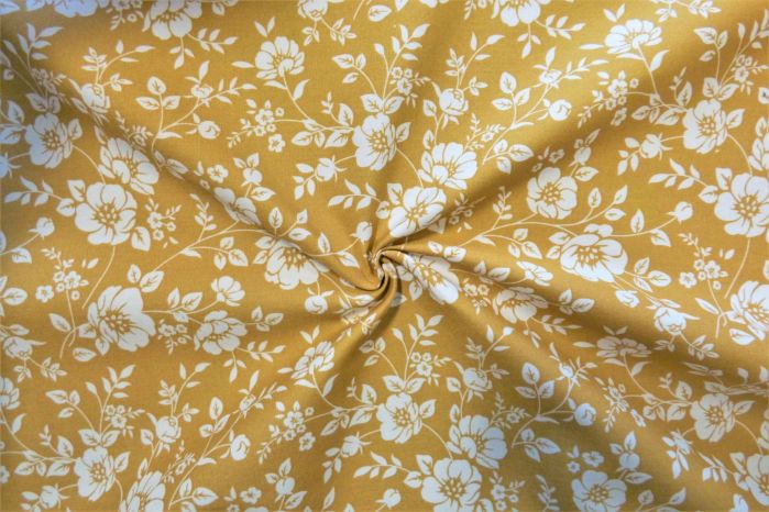 A Quality Ex-Designer 100% Cotton Poplin Digital Floral Print in Gold & Ivory