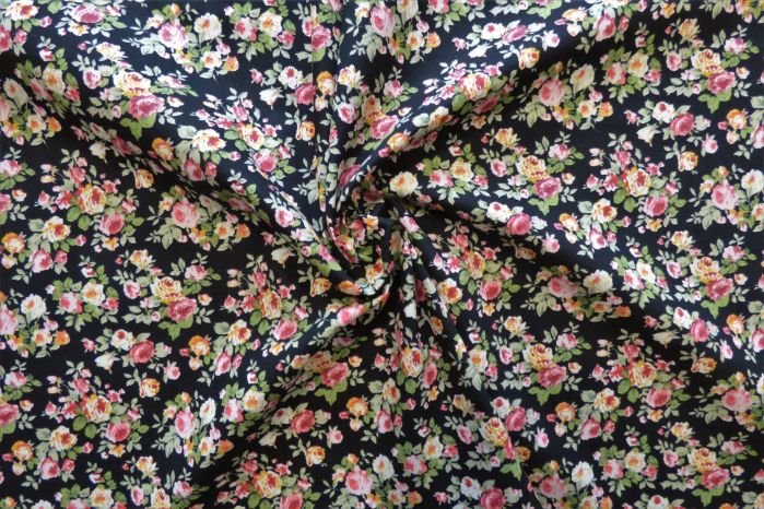 A Quality Ex-Designer 100% Cotton Poplin Digital Floral Print on a Black Background