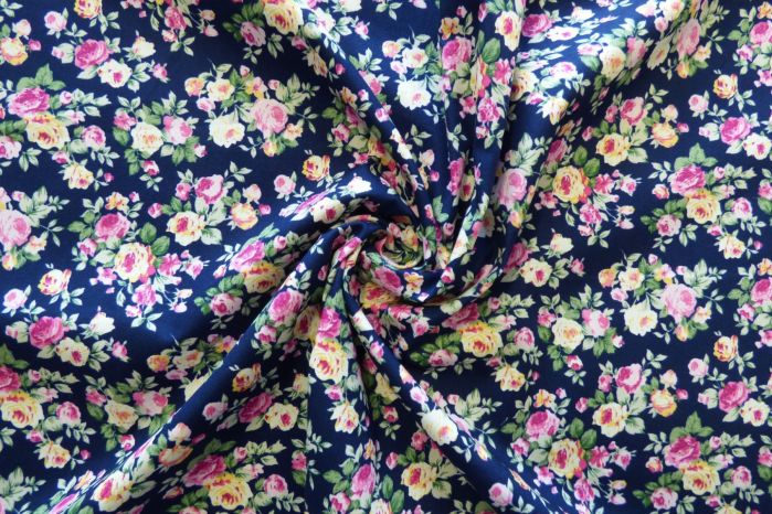 A Quality Ex-Designer 100% Cotton Poplin Digital Floral Print on a Navy Background