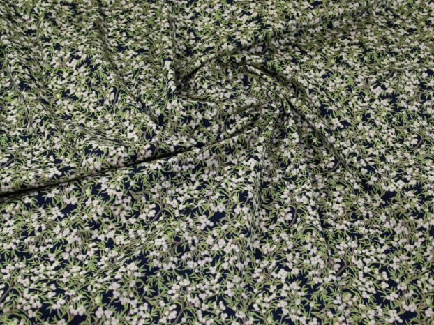 A Quality Ex-Designer 100% Cotton Poplin Digital Floral Print in Navy, Bright Green & Ivory Tones