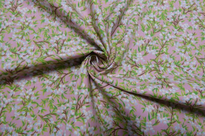 A Quality Ex-Designer 100% Cotton Poplin Digital Floral Print in Dusky Pink, Bright Green & Ivory Tones