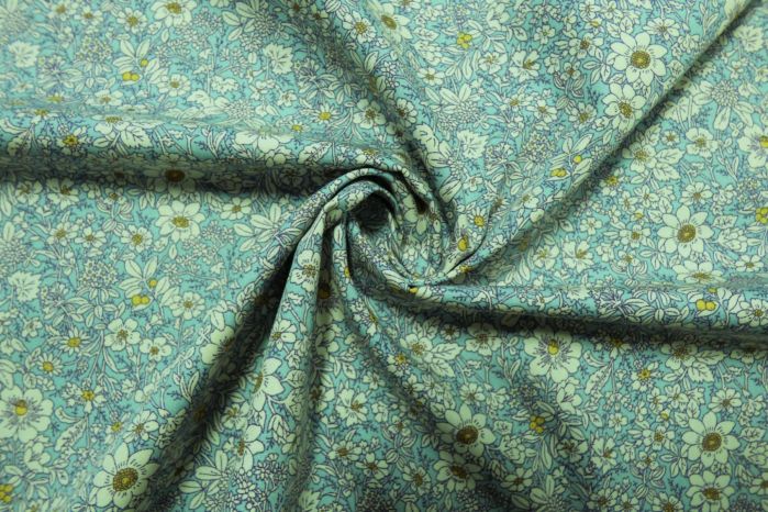 A Quality Ex-Designer 100% Cotton Poplin Floral Print in Sky