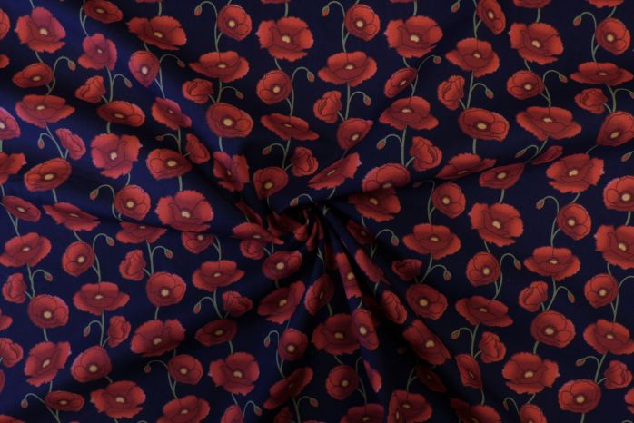 A Quality Ex-Designer 100% Cotton Poplin Floral Print in Deep Red on Navy