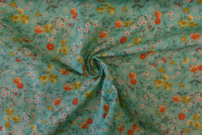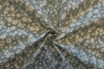 A Quality Ex-Designer 100% Cotton Poplin Floral Print in Soft Tones On Green