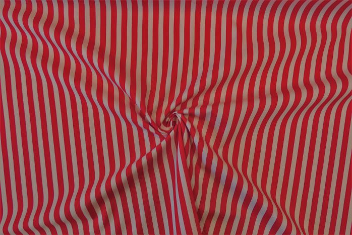 A Quality Ex-Designer 100% Cotton Poplin Stripe Print in Red & White