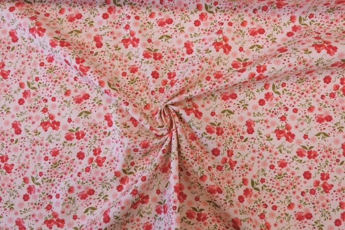 A Quality Ex-Designer 100% Cotton Poplin Vibrant Floral Print on a Ivory Background