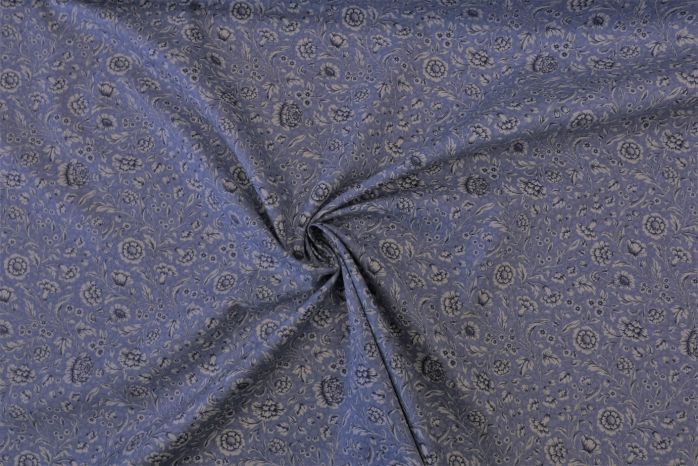 A Quality Ex-Designer 100% Cotton Poplin Floral Print in Ivory, Navy & Mid Blue Tones