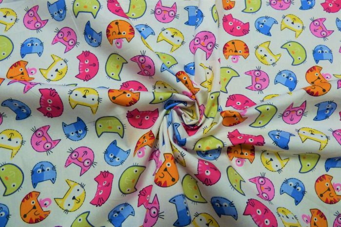 A Quality Ex-Designer 100% Cotton Poplin Cat Face Print On Ivory Background