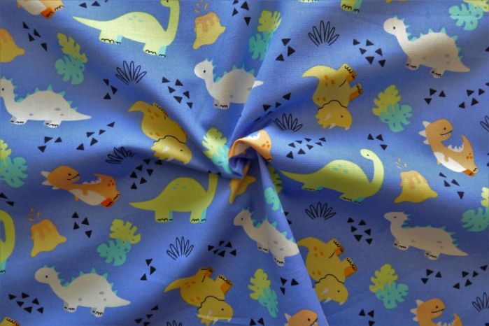 A Quality Ex-Designer 100% Cotton Poplin Dinosaur Print On Blue Background