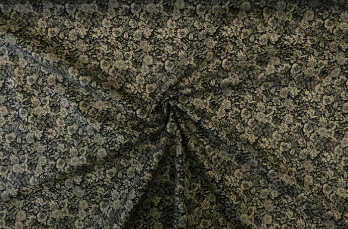 A Quality Ex-Designer 100% Cotton Poplin Floral Print On Black Background