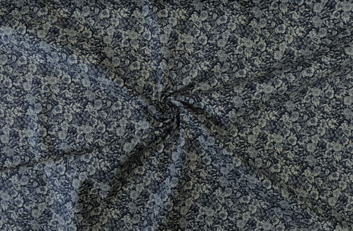 A Quality Ex-Designer 100% Cotton Poplin Floral Print In Navy
