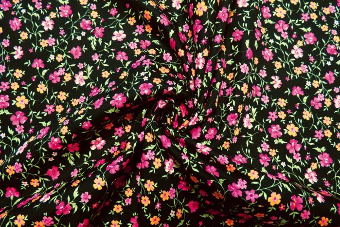 A Quality Ex-Designer 100% Cotton Poplin Pretty Floral Print On A Black Background