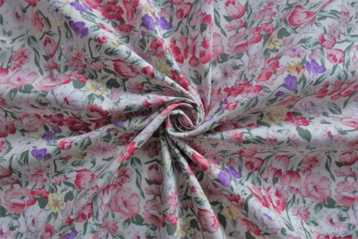 A Quality Ex-Designer 100% Cotton Poplin Floral Print In Ivory