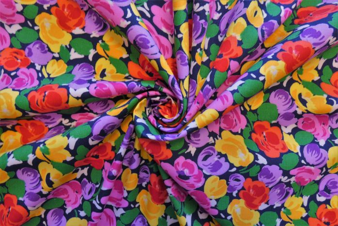 A Quality Ex-Designer 100% Cotton Poplin Floral Print In Navy